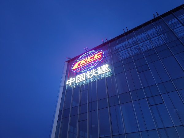 武汉中国铁建华中总部大楼设计新颖,配上玻璃幕墙发光字的设计为公共空间带来了独特的体验。极其醒目的将公司品牌形象展现在人们眼前。